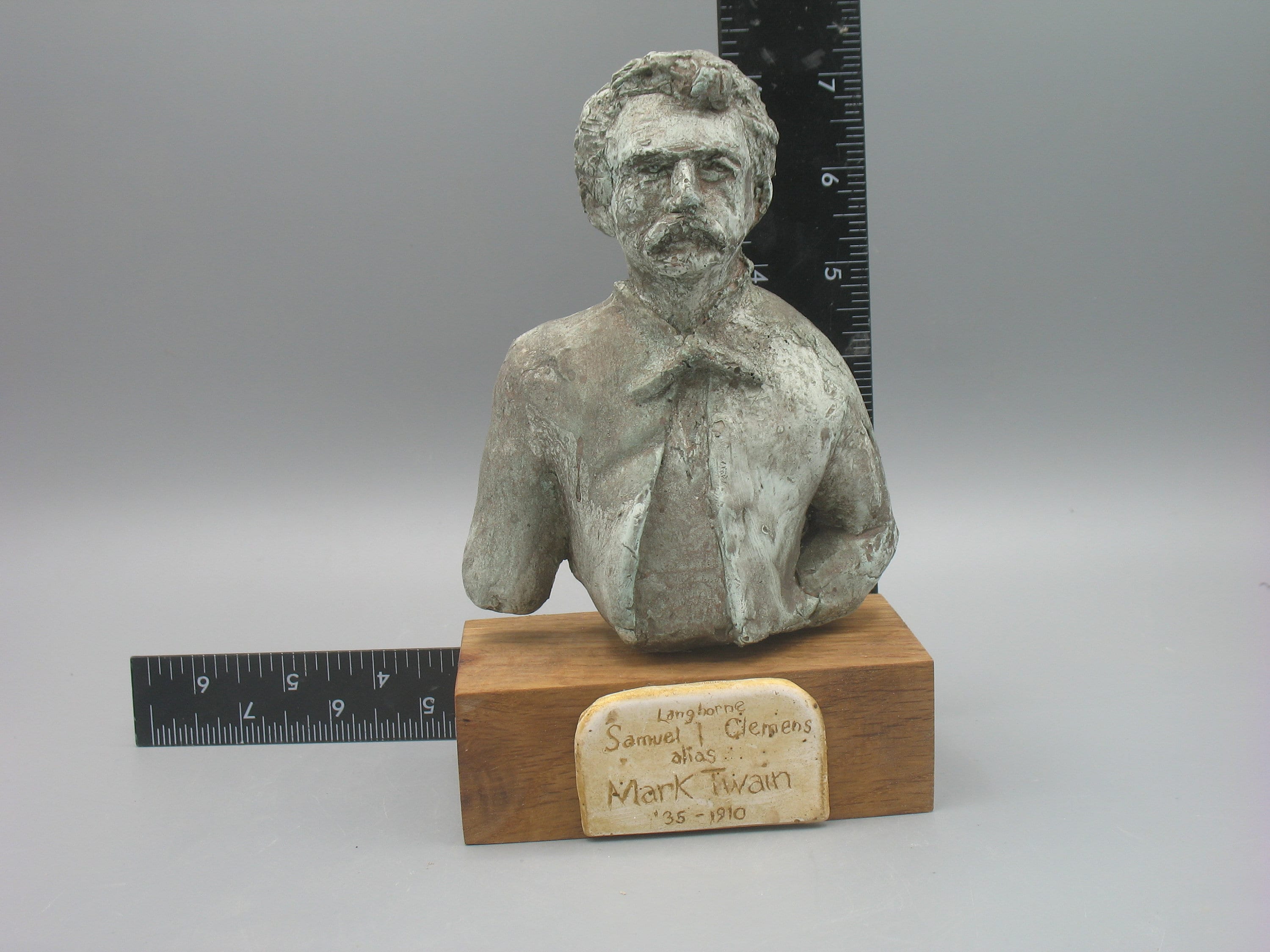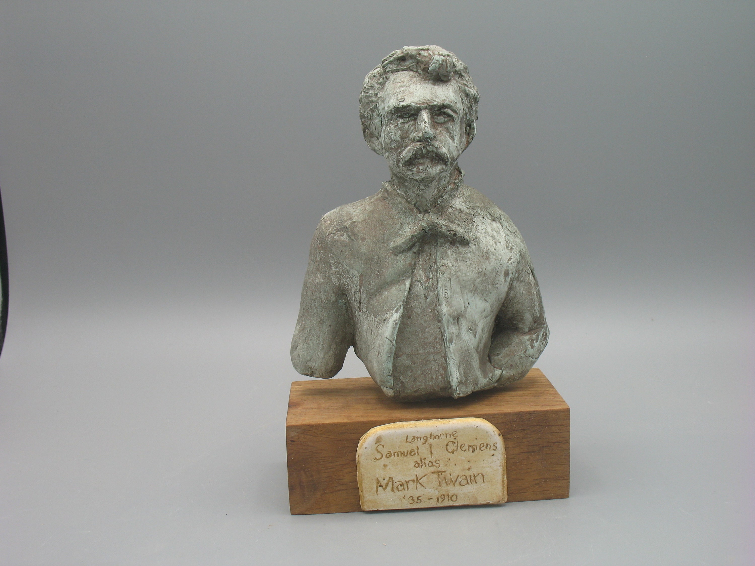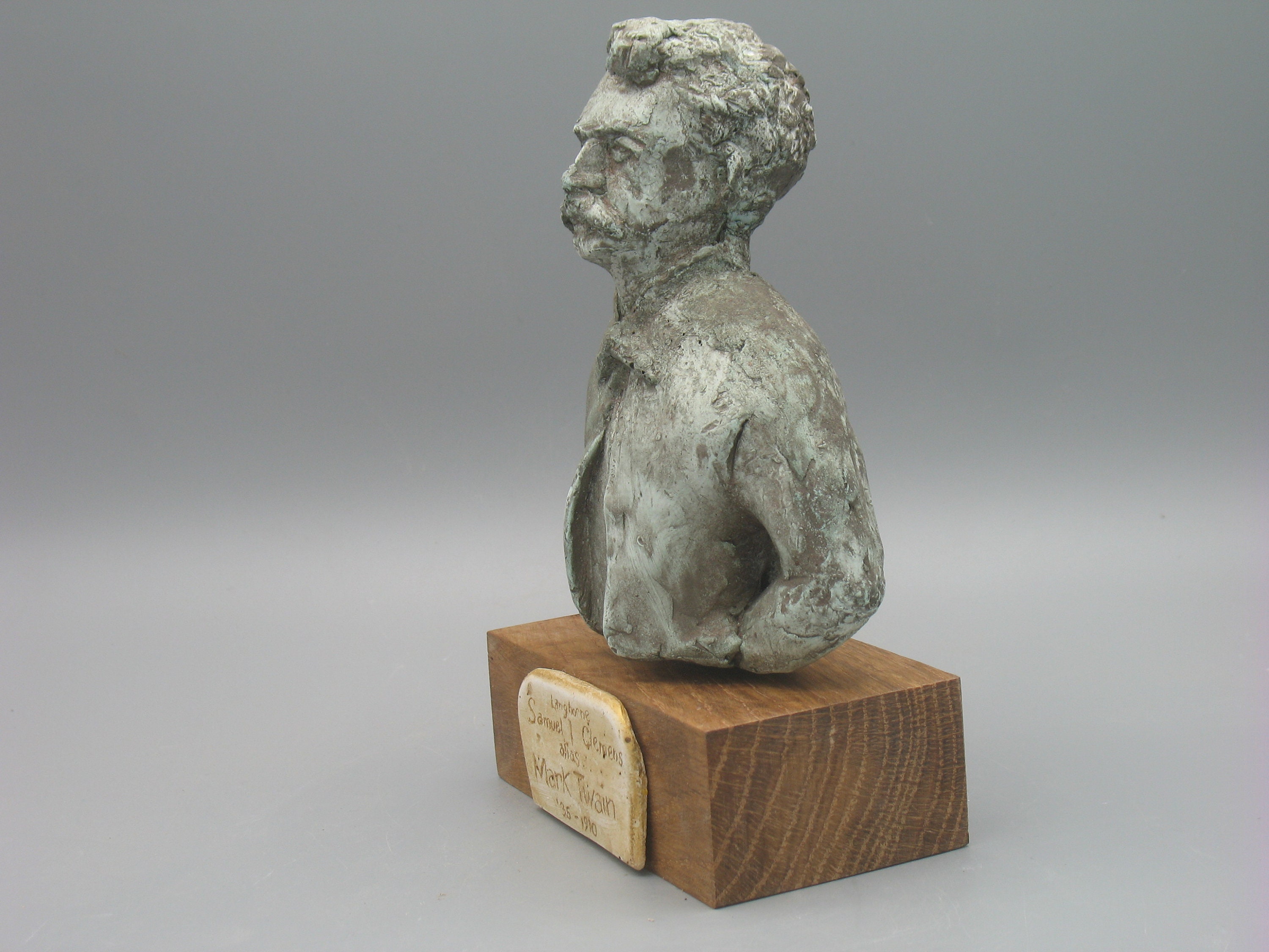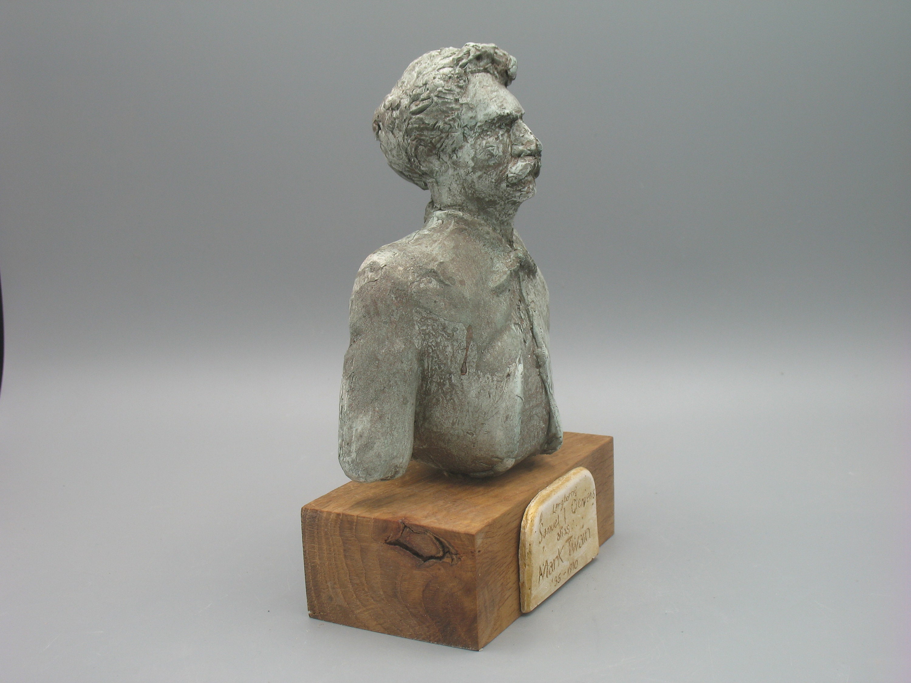 This is the Sam that trecked West and around Europe...that wrote Huck & Jim and the Jumping Frog...a bit before that Connecticut Yankee with white hair and a seegar with a fancy home white suits and brass bannisters. THAT's the one that's always pictured...and since I wanted to avoid the competition and preferred the hop, scotch and braggart anyway, I did him like I liked him. He's sorta rough, but the name plate say's it all '35 to 1910. This was America.