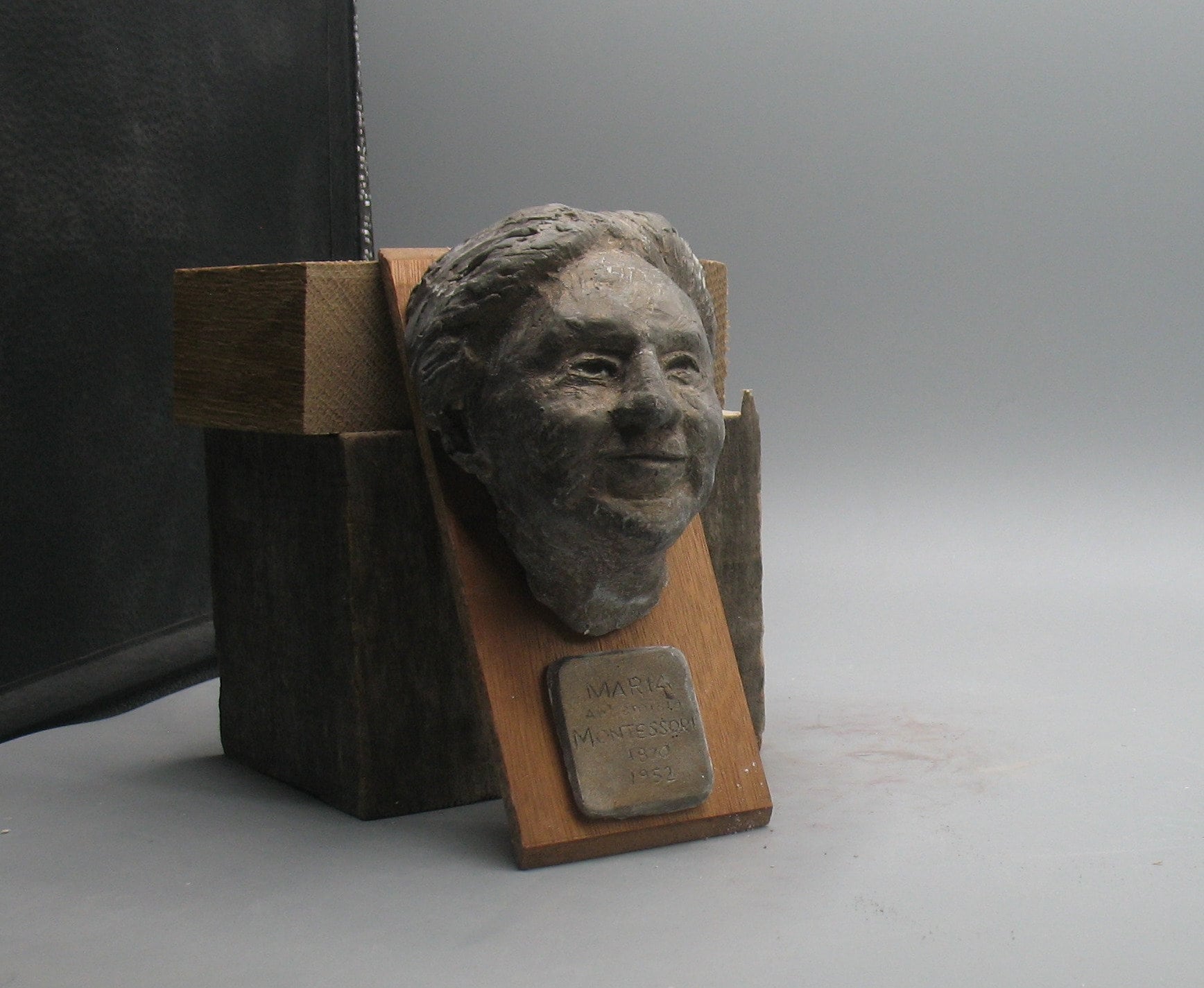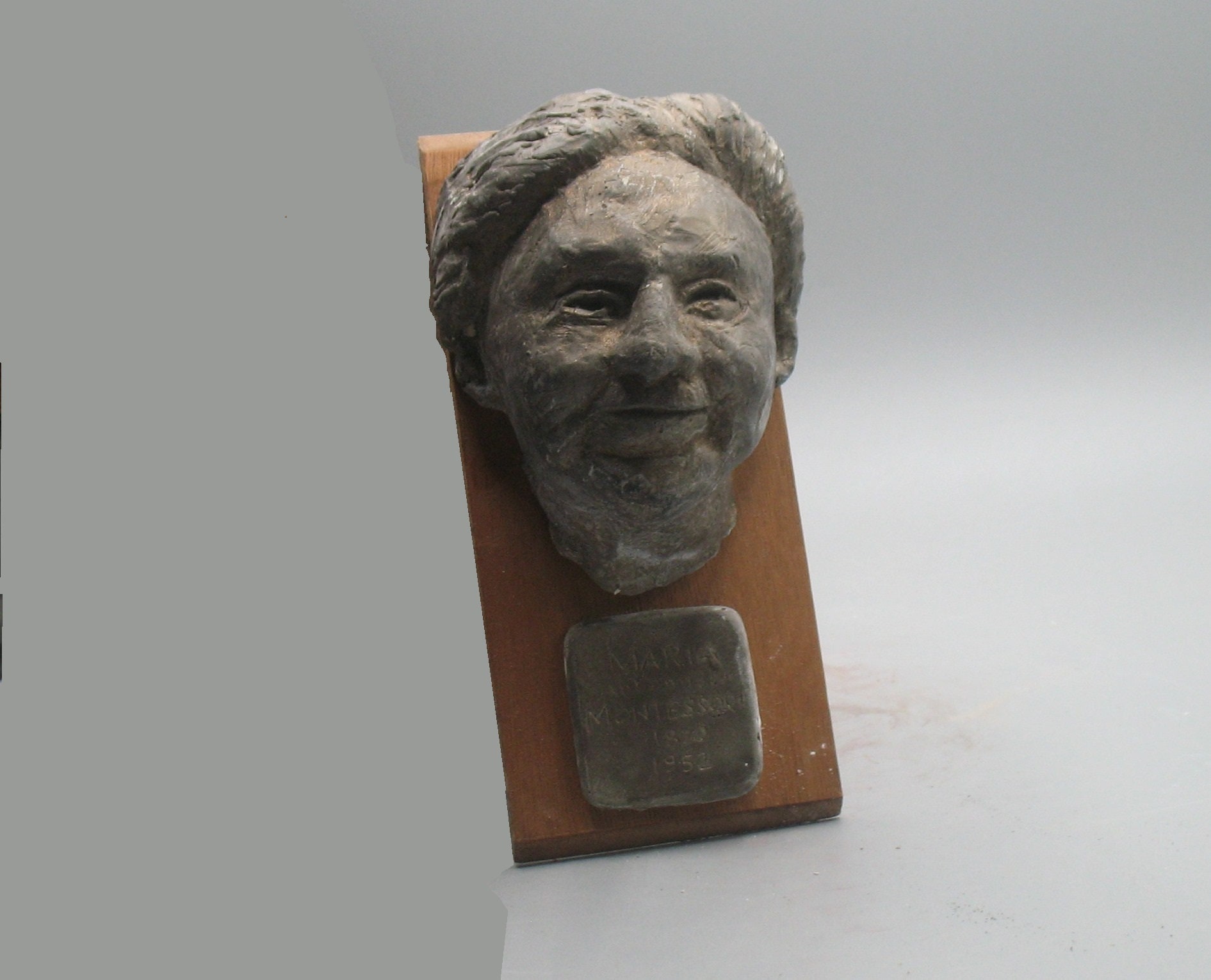 Maria Montessori - wall mounted plaster bust, bronze patina