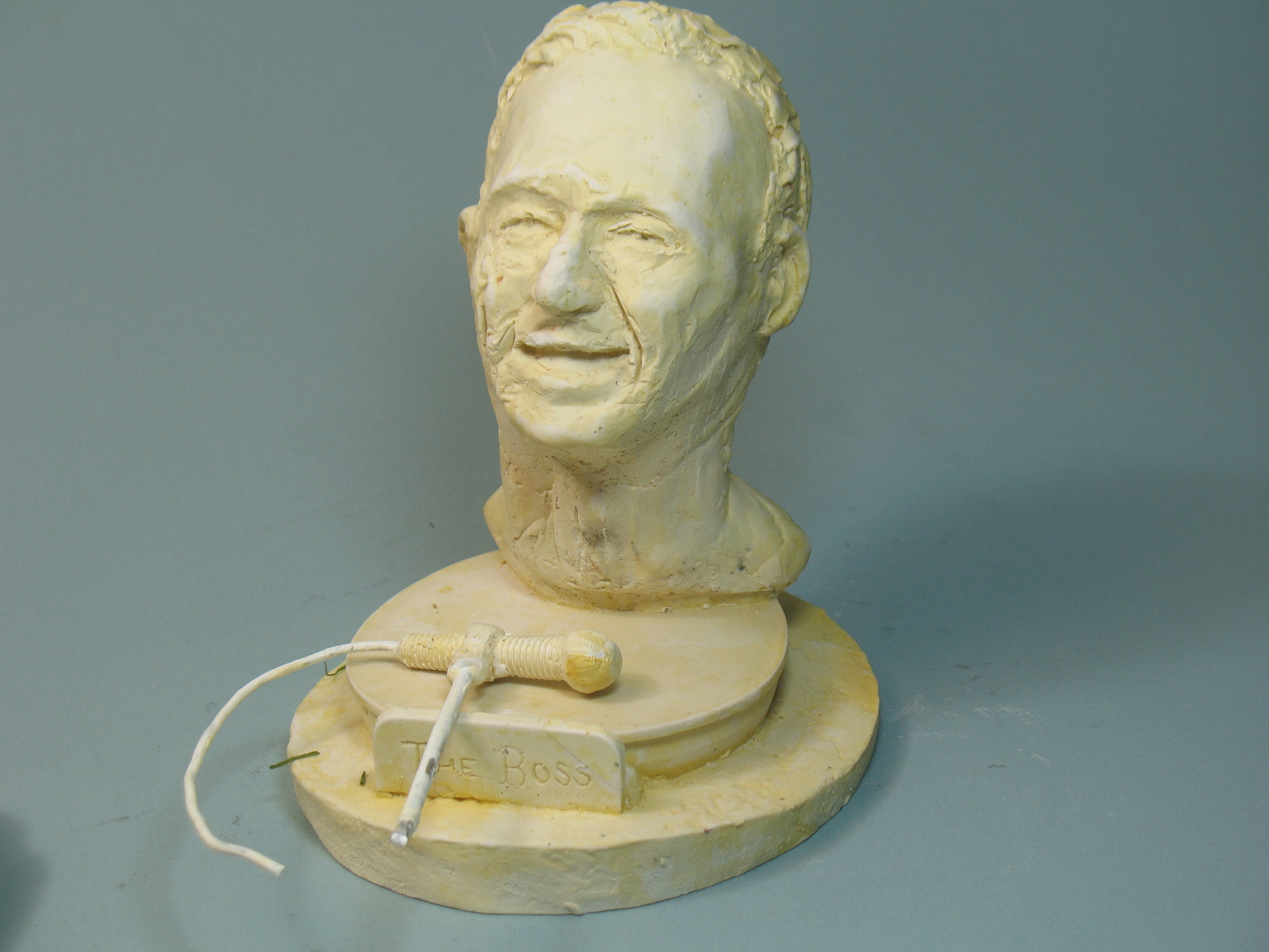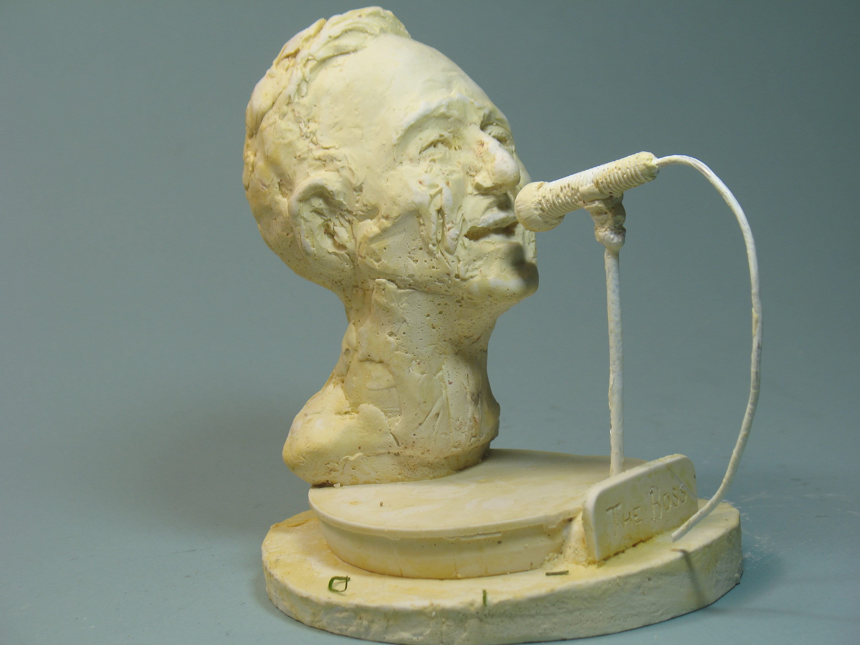 Slowly working my way through music icons of my generation, several New Jersey requests prioritized the Boss. Please specify whether you want him in white, antique white, or copper/ bronze patina. For the bronze patina, they are all a bit different. I will send you a picture of what I have in stock and you can choose which you want, or I'll make another like the one shown (that has been sold) Also, I have not cast a pure white, but my wife preferred it to the antiqued version, so a photo will be forthcoming.