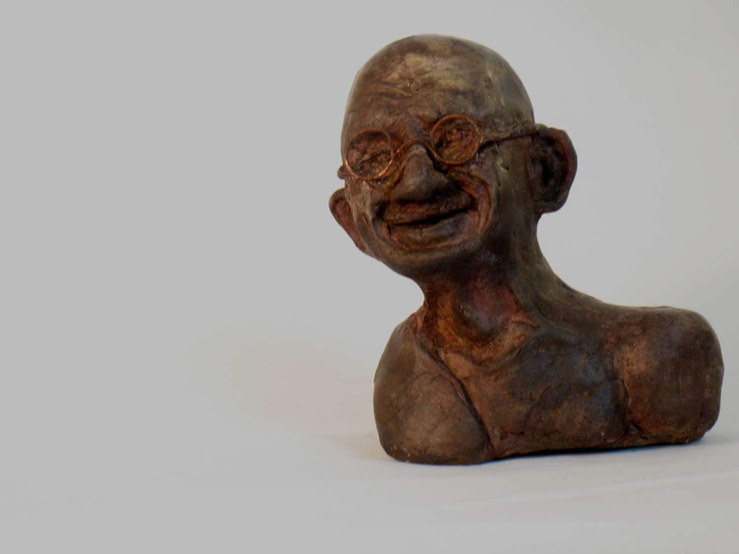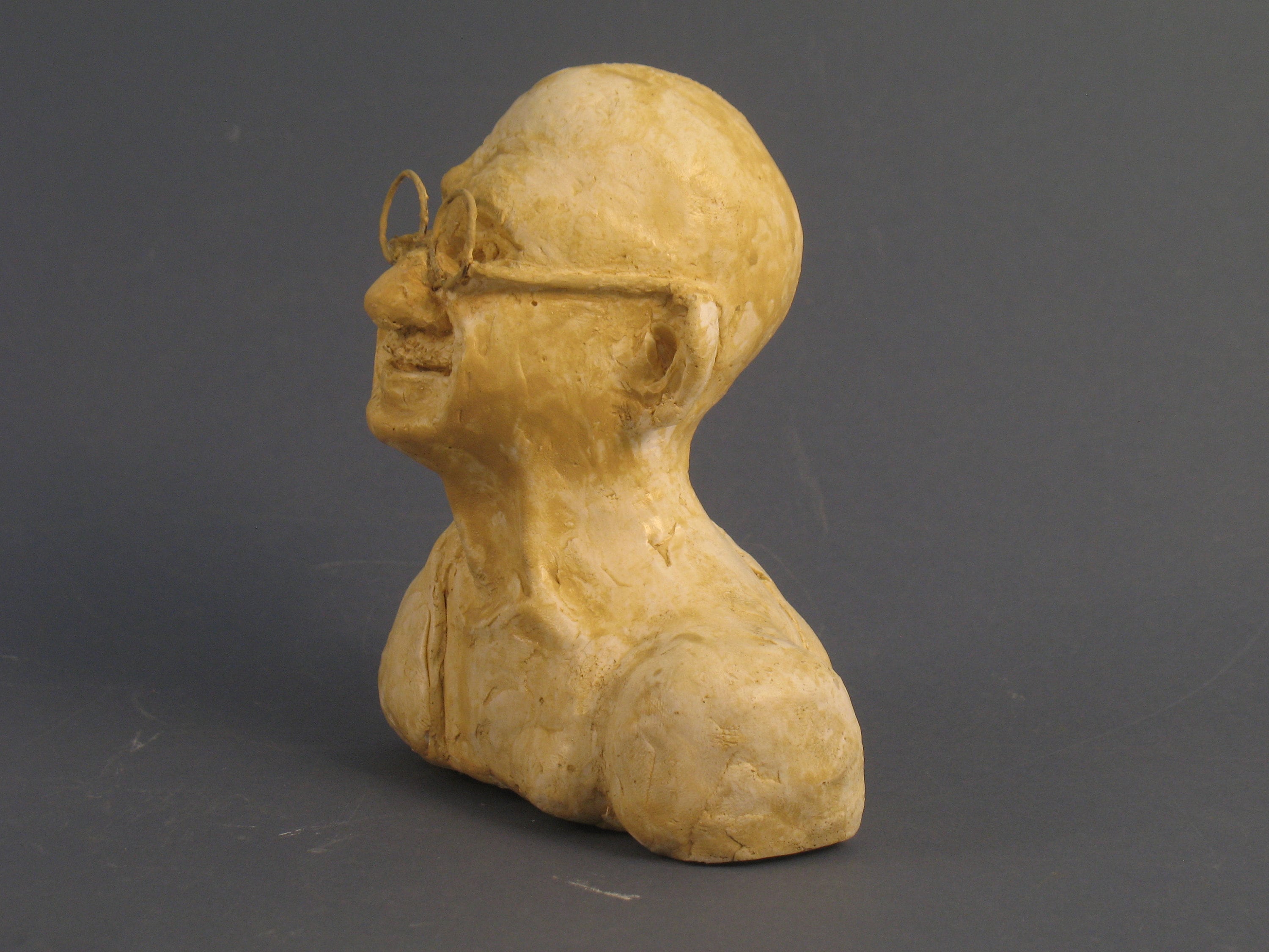 I have been holding back on Gandhi for several years. When I started it was to do him as a young man in S. Africa....but this was not a success, leaving him looking so very serious. It was when I made the face older and started adding the famous smile that I felt I was beginning to catch him. The glasses took much much much work....and I am satisfied that I finally figured out how to do them properly.
