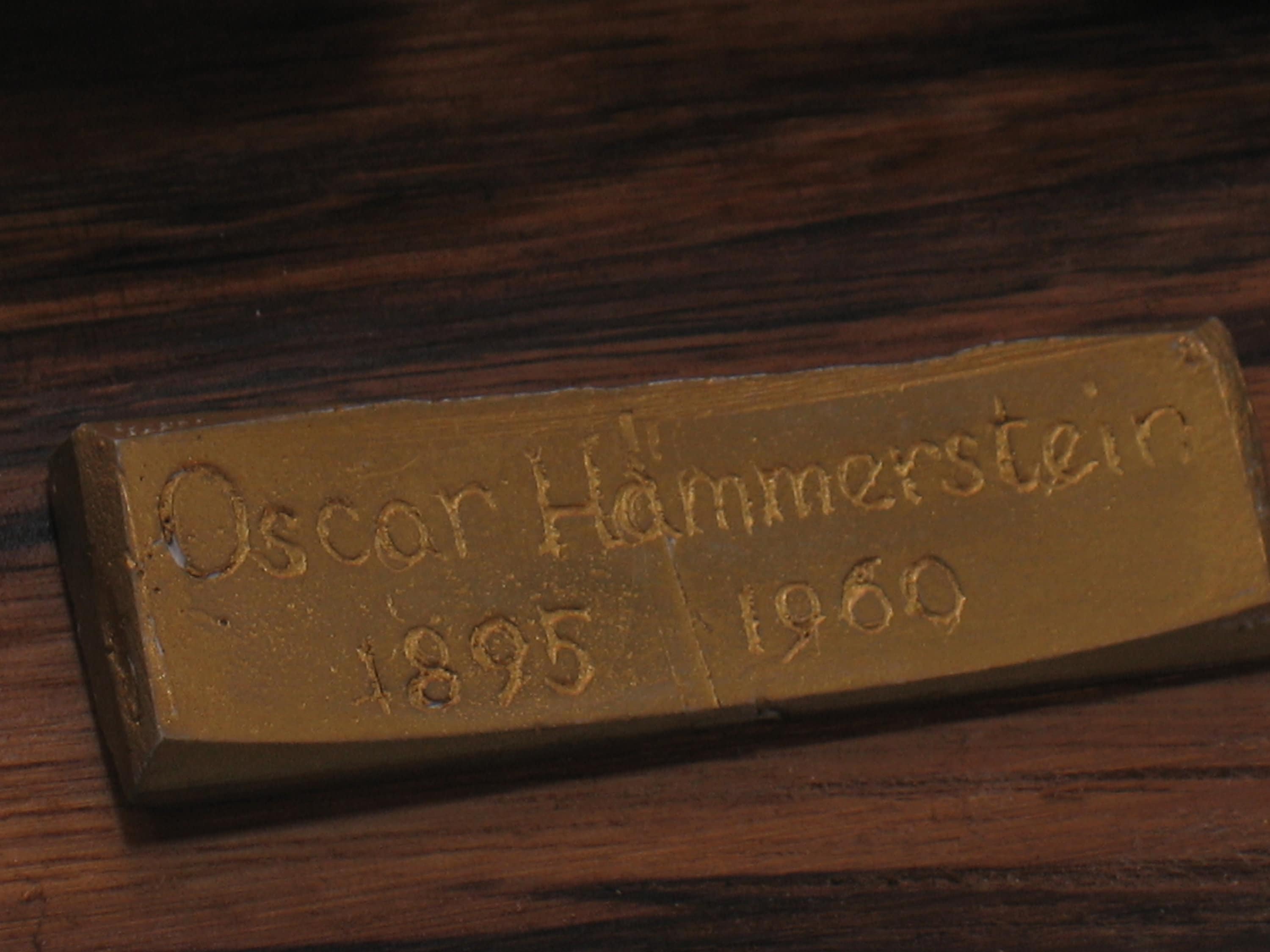 Oscar Hammerstein has been on my to-do-list for four years and I'm super happy to have him in the collection finally. The picture of me on the site is actually on Hammerstein's front porch in Doylestown, PA, where we stayed a night at the B&B. He visited us at 3:20AM when all the lights went on in his bedroom where we were sleeping. I don't remember if they went on one-by-one, but it was not creepy. He was a wonderful fellow from all I can gather ....at least from his lyrics.