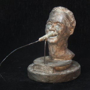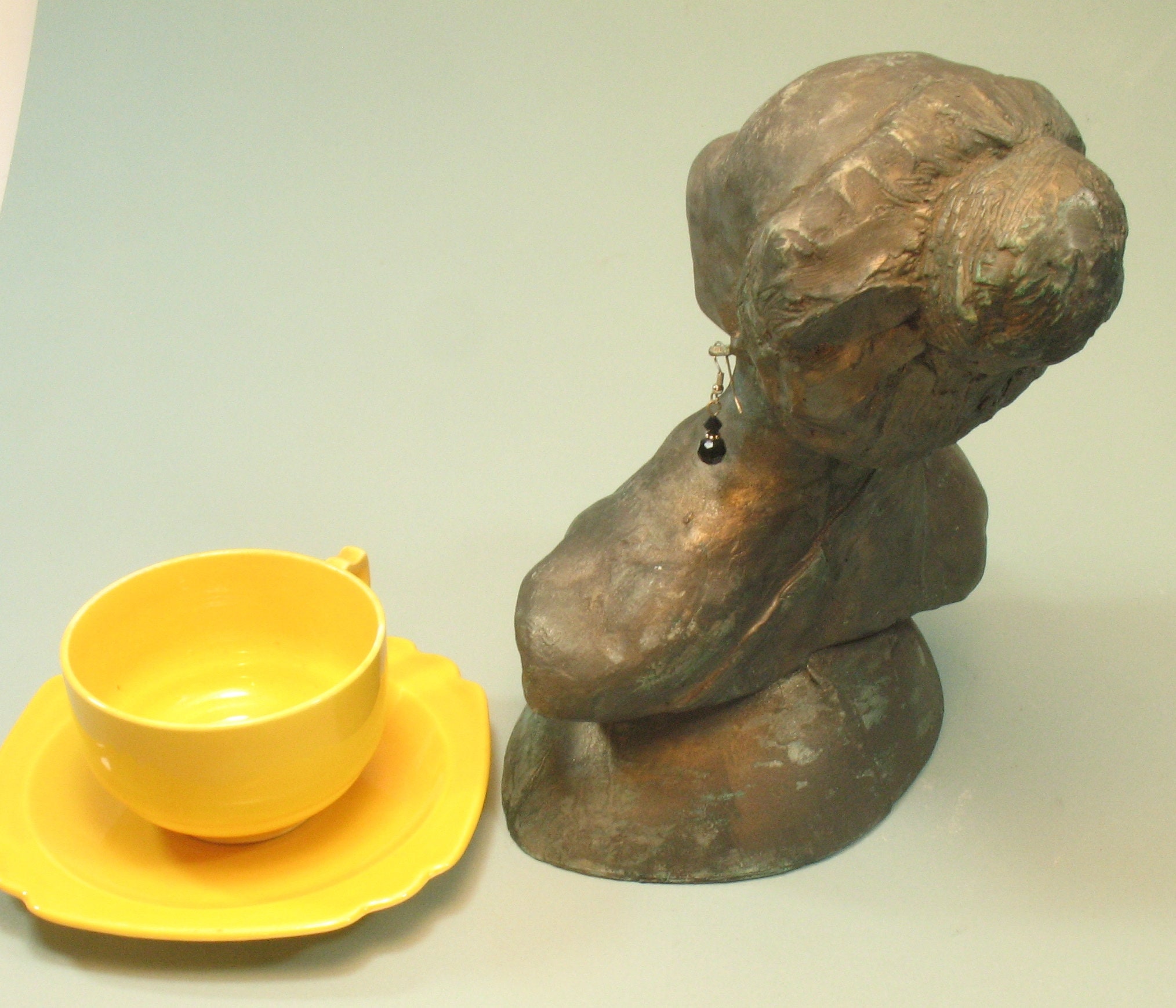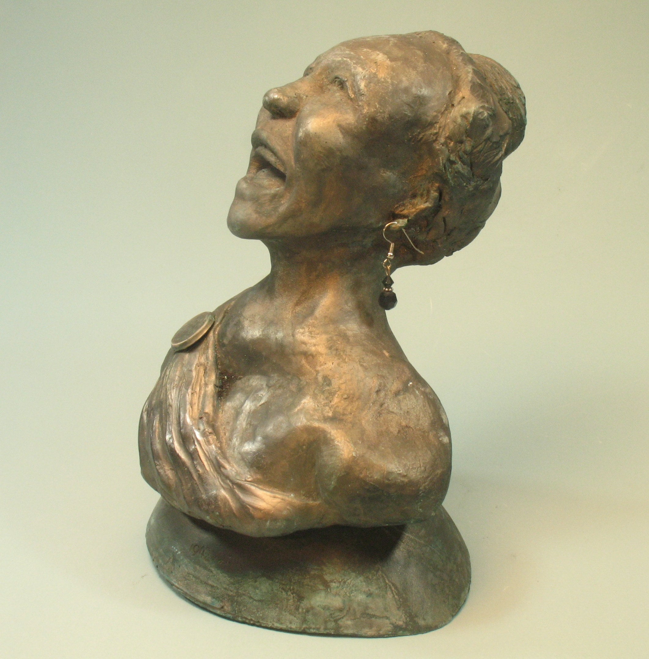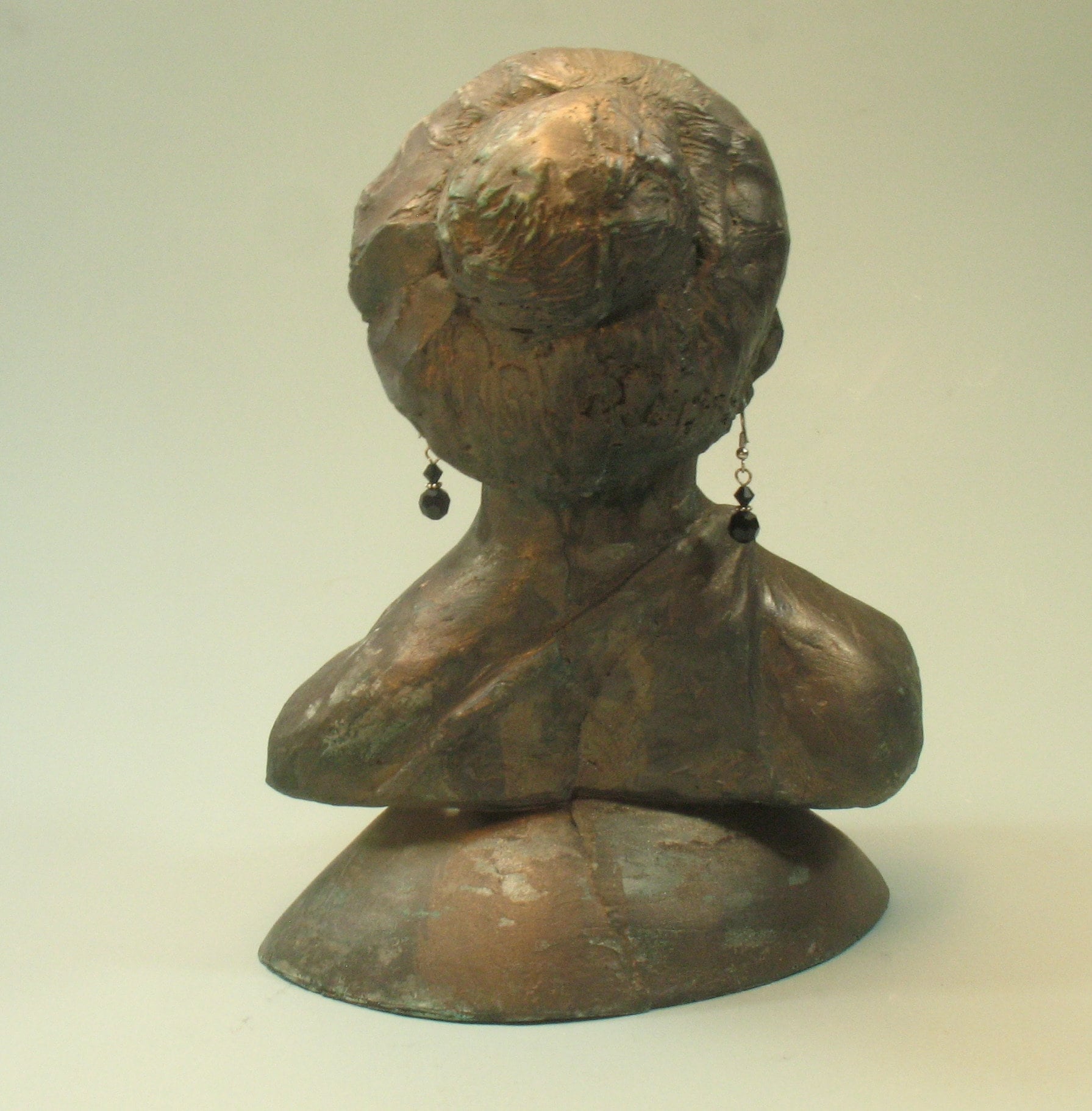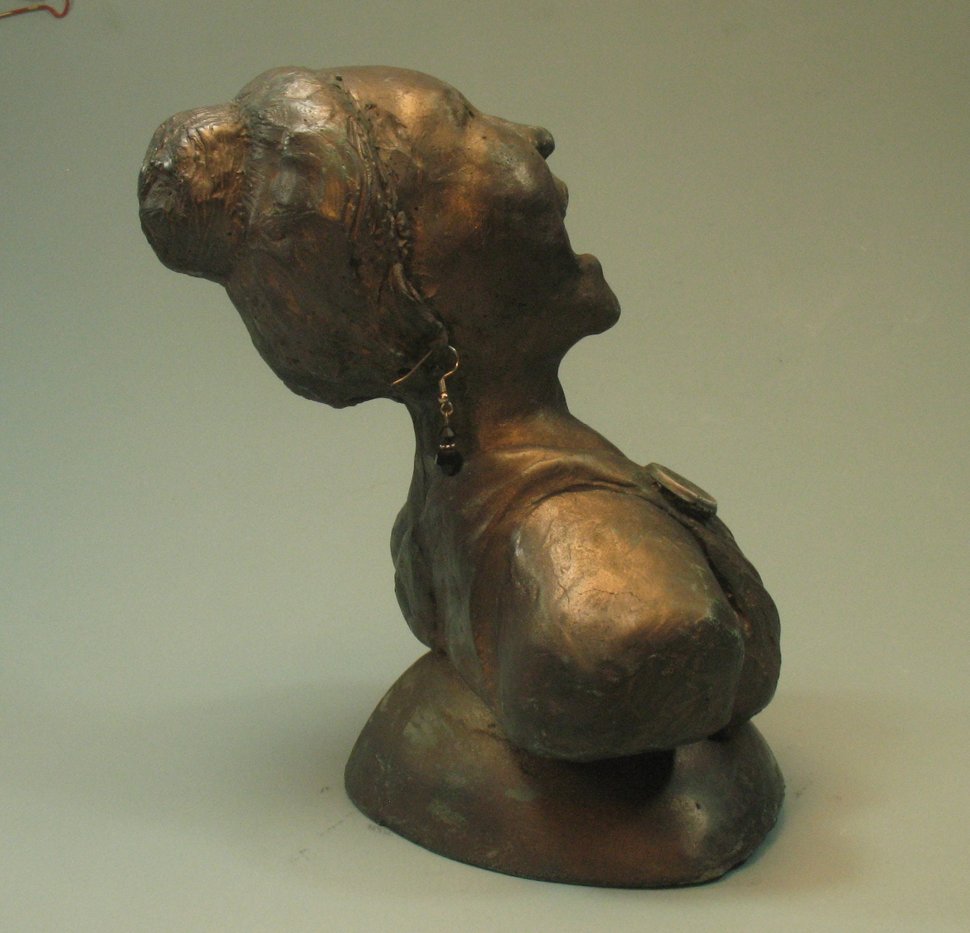 I began this the day she died....picturing her from around the 80's with short hair. I think I got her likeness....but a real fan would have to decide that. The earrings I casted didn't take...busted out of the mold, but the obvious answer I should have thought of from the get-go....let people hang their own earrings of choice in them!!