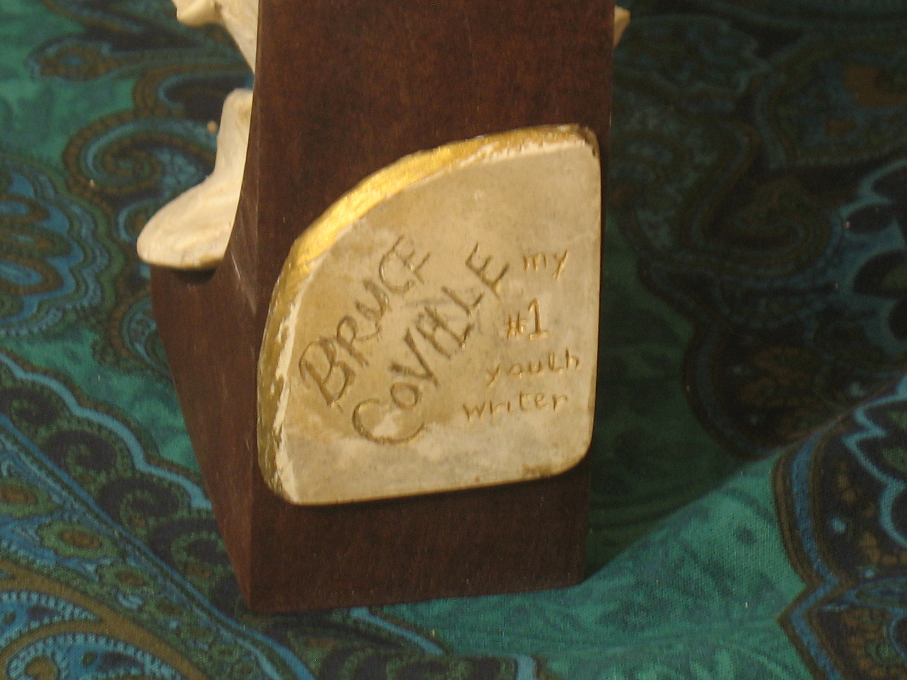 Bruce Coville is my recent discovery in the childrens' section at the library ---the Gnome King of the Mythlands, he is Mythlandic---writing in every genre with a whimsy that I can't resist. I have put him in with all the other heros, as I felt he needs a bust for the childrens' section at the library. Several other new favorites are on their way....I don't necessarily hold to Caldecott's opinion.