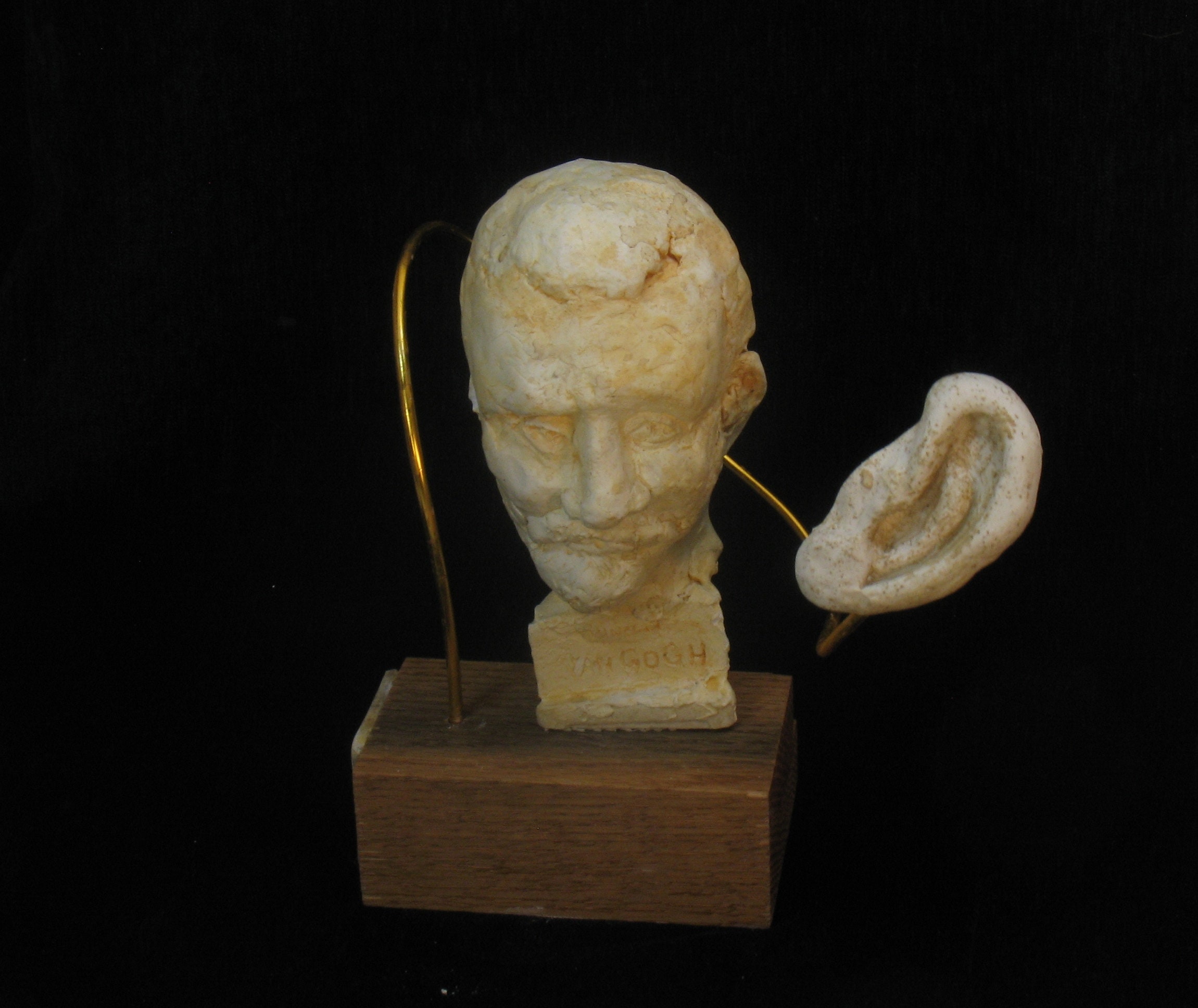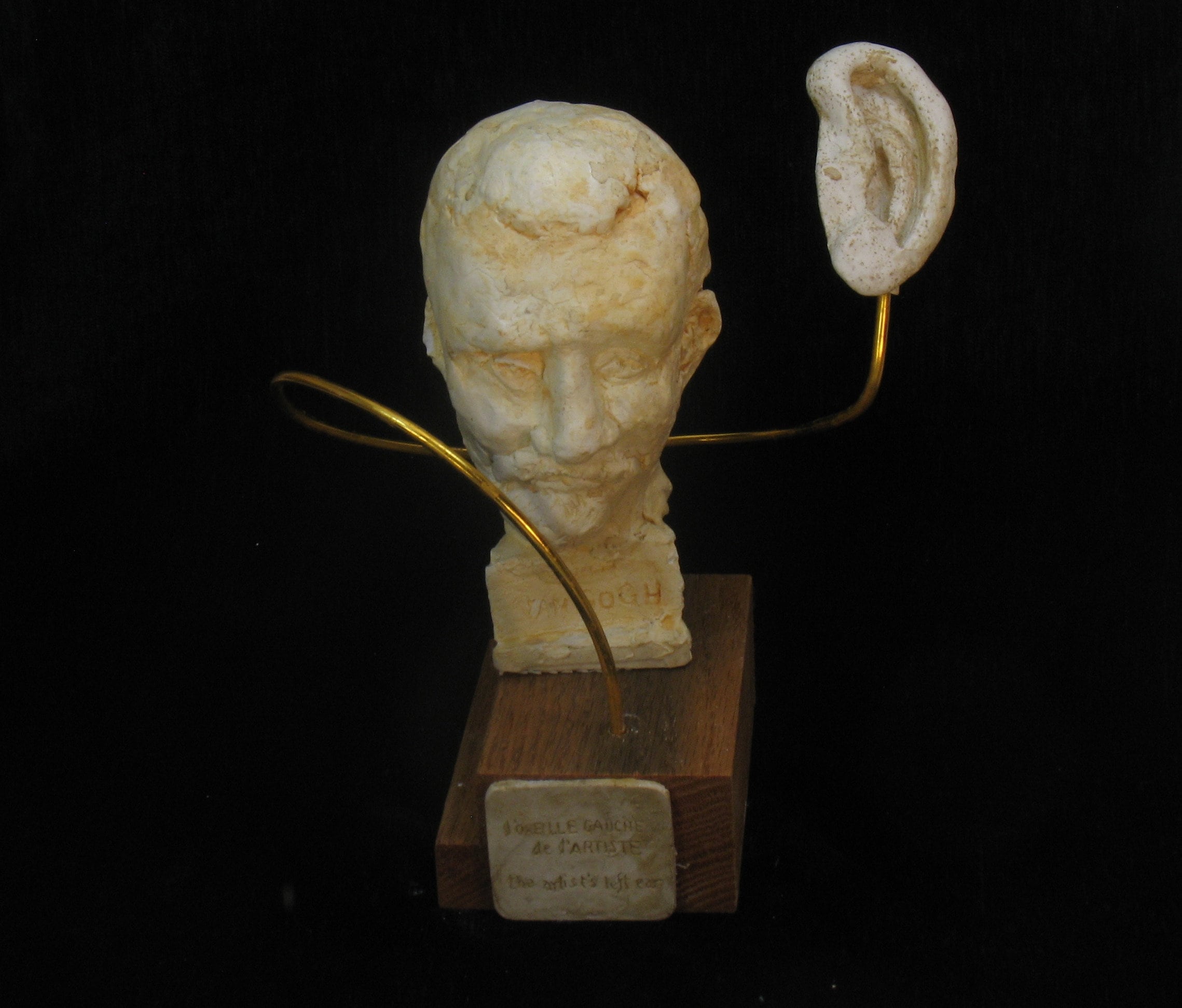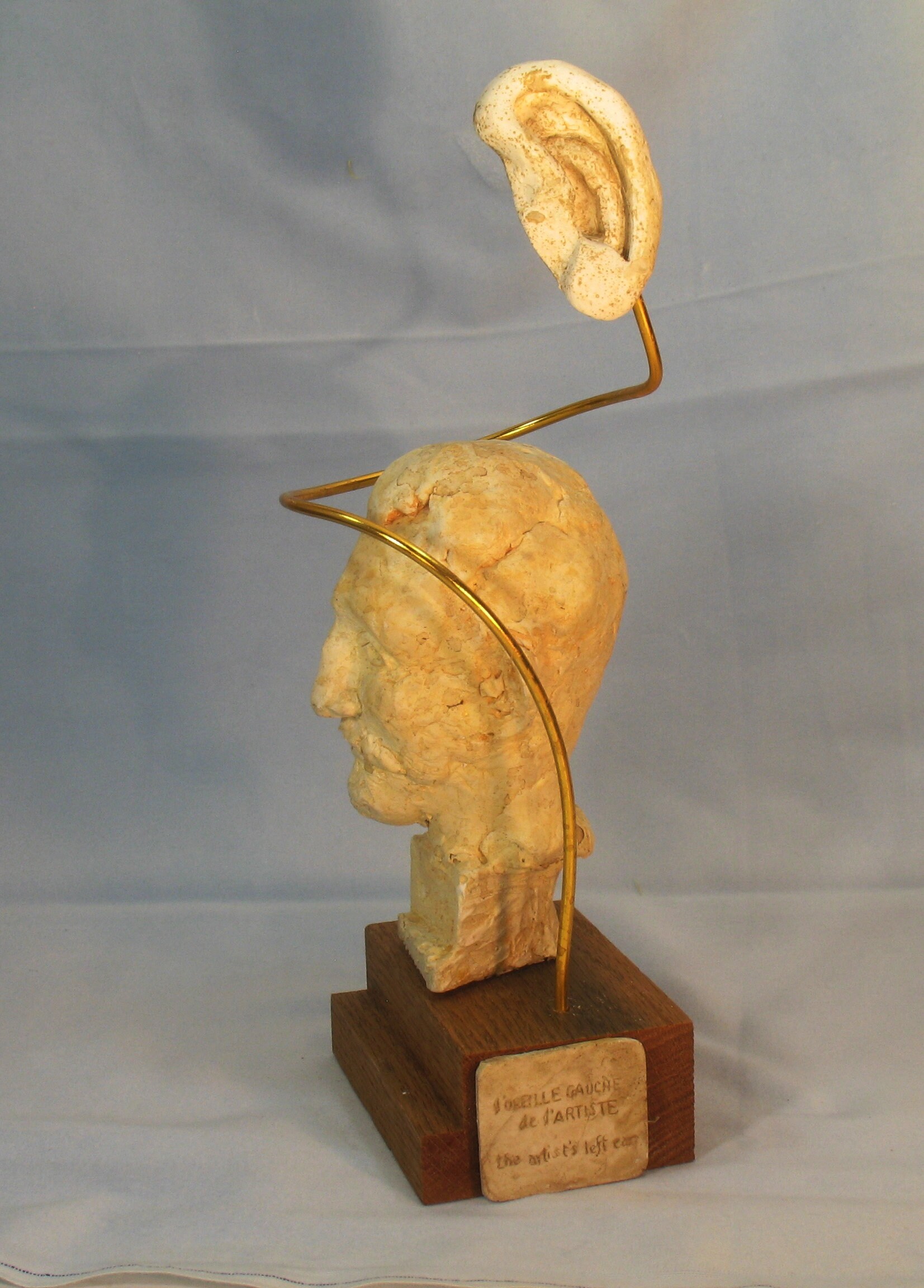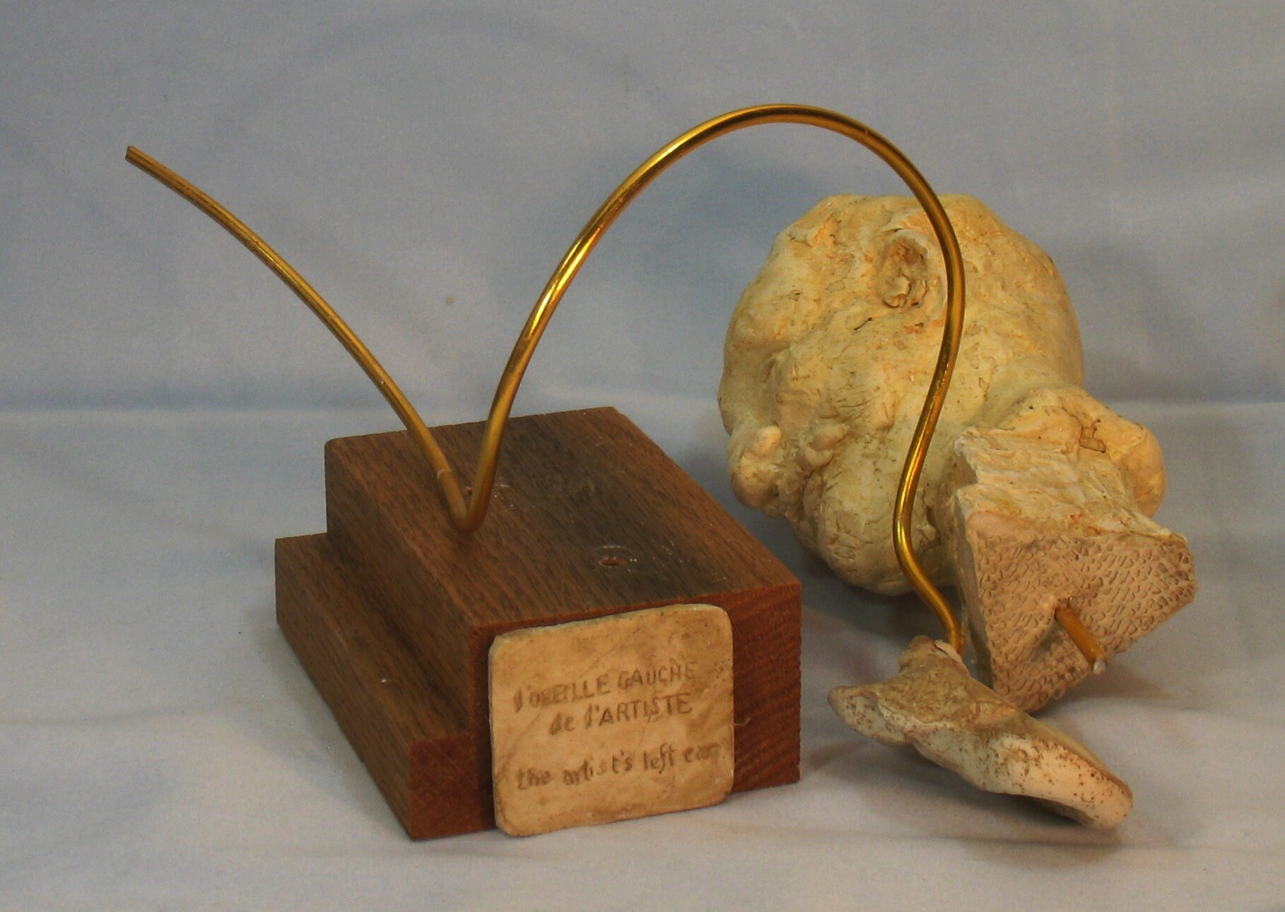 AH.... if you've browsed the pictures you will see that I ALSO OFFER HIS EAR at a discounted price of $25 extra on the cost of Vincent! The ear normally retails at $35, so this is a savings of ....well, you can figure it out for yourself. It is REALLY MY EAR, and not Vincent's, so it is TRULY the 'Oreille gauche de l'artiste' as it says on the nameplate!