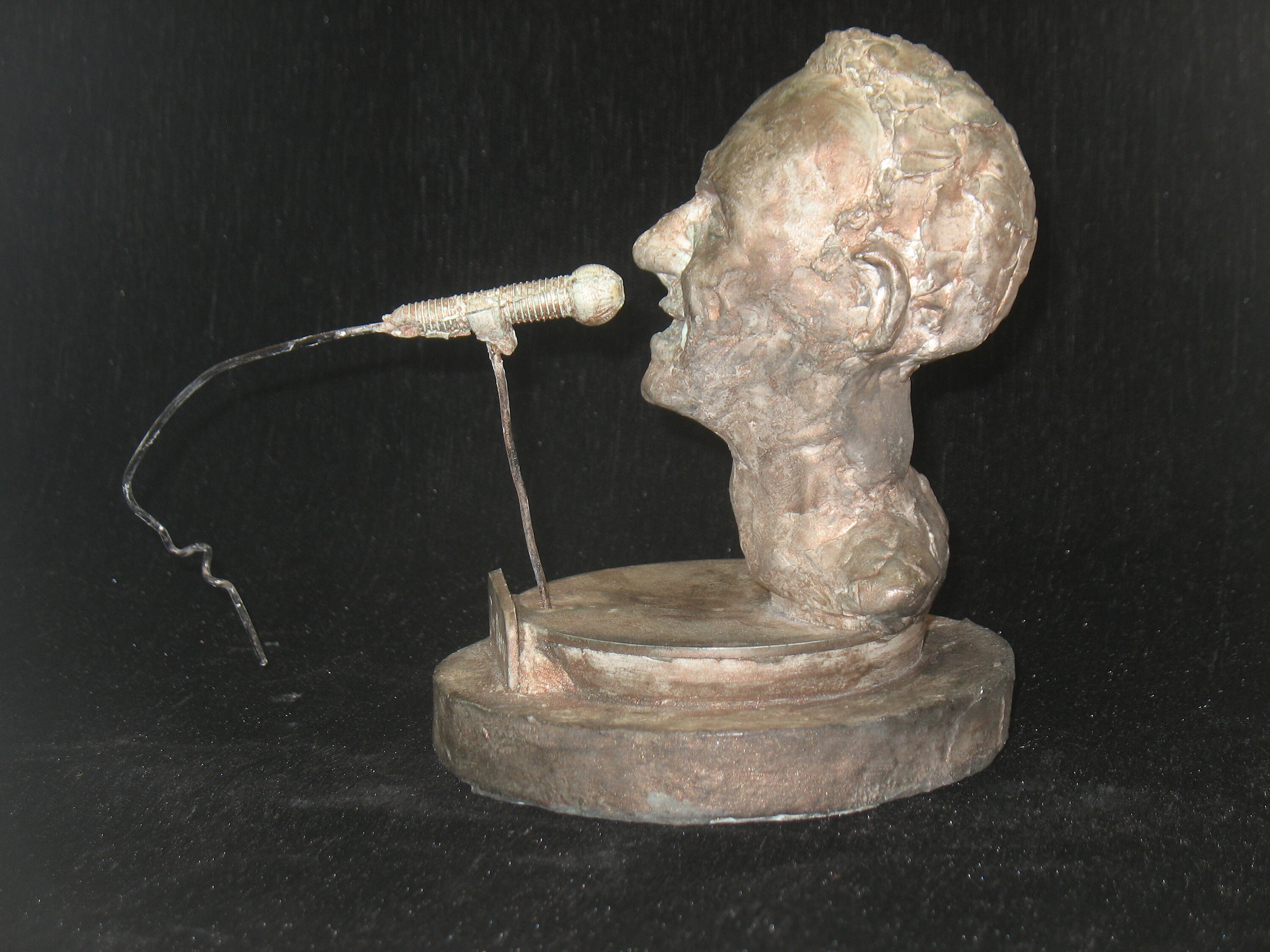 Slowly working my way through music icons of my generation, several New Jersey requests prioritized the Boss. Please specify whether you want him in white, antique white, or copper/ bronze patina. For the bronze patina, they are all a bit different. I will send you a picture of what I have in stock and you can choose which you want, or I'll make another like the one shown (that has been sold) Also, I have not cast a pure white, but my wife preferred it to the antiqued version, so a photo will be forthcoming.