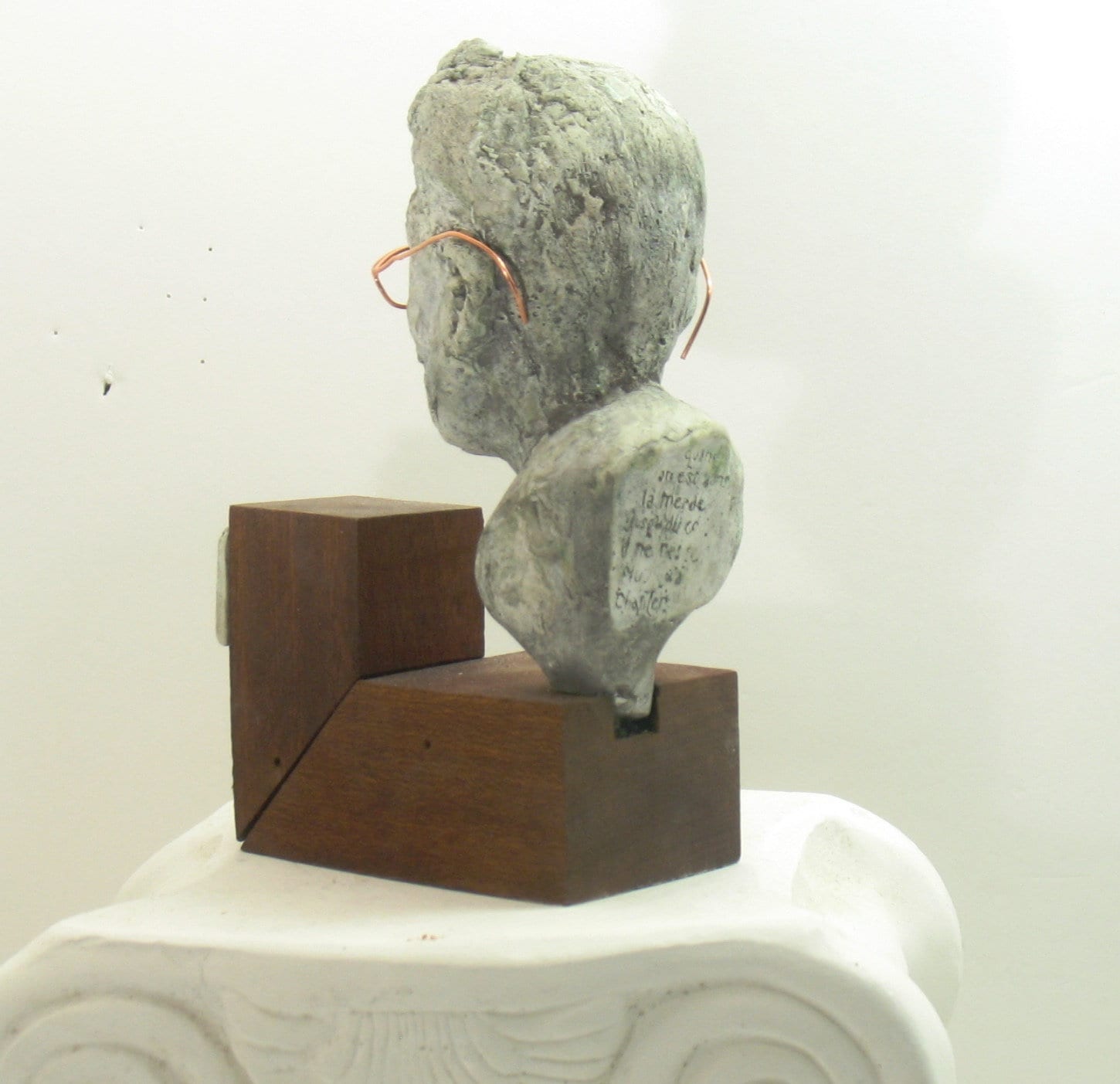 The quote on his back in French means, "when you're up to your neck in shit the only thing to do is sing!"